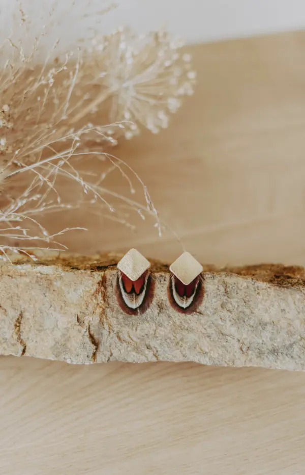 Composé de plumes aux jolis reflets pourpre et ocre caractéristique de la plume de faisan.