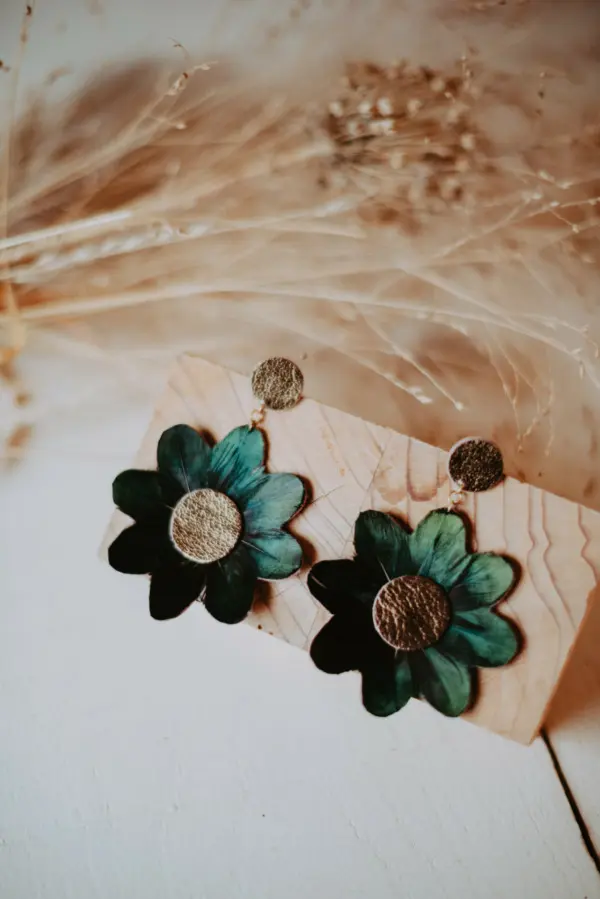 Elles sont constituées de plumes de faisan et d'un joli cuir bronze.