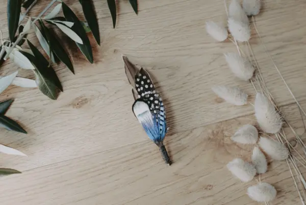 "Gabin" est une boutonnières en plumes véritables d'oie, de pintade et de faisan.