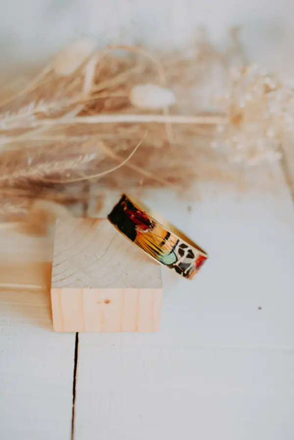 Montée sur une manchette en laiton couleur bronze.