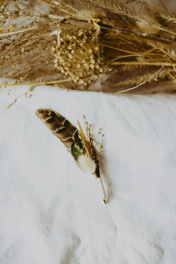 "Othis" est une boutonnières en plumes véritables aux inspirations bohème.