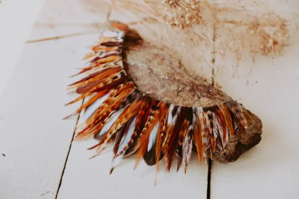 "Nébuleuse" est le plastron en plumes idéales pour votre donner de l'originalité à votre tenu.
